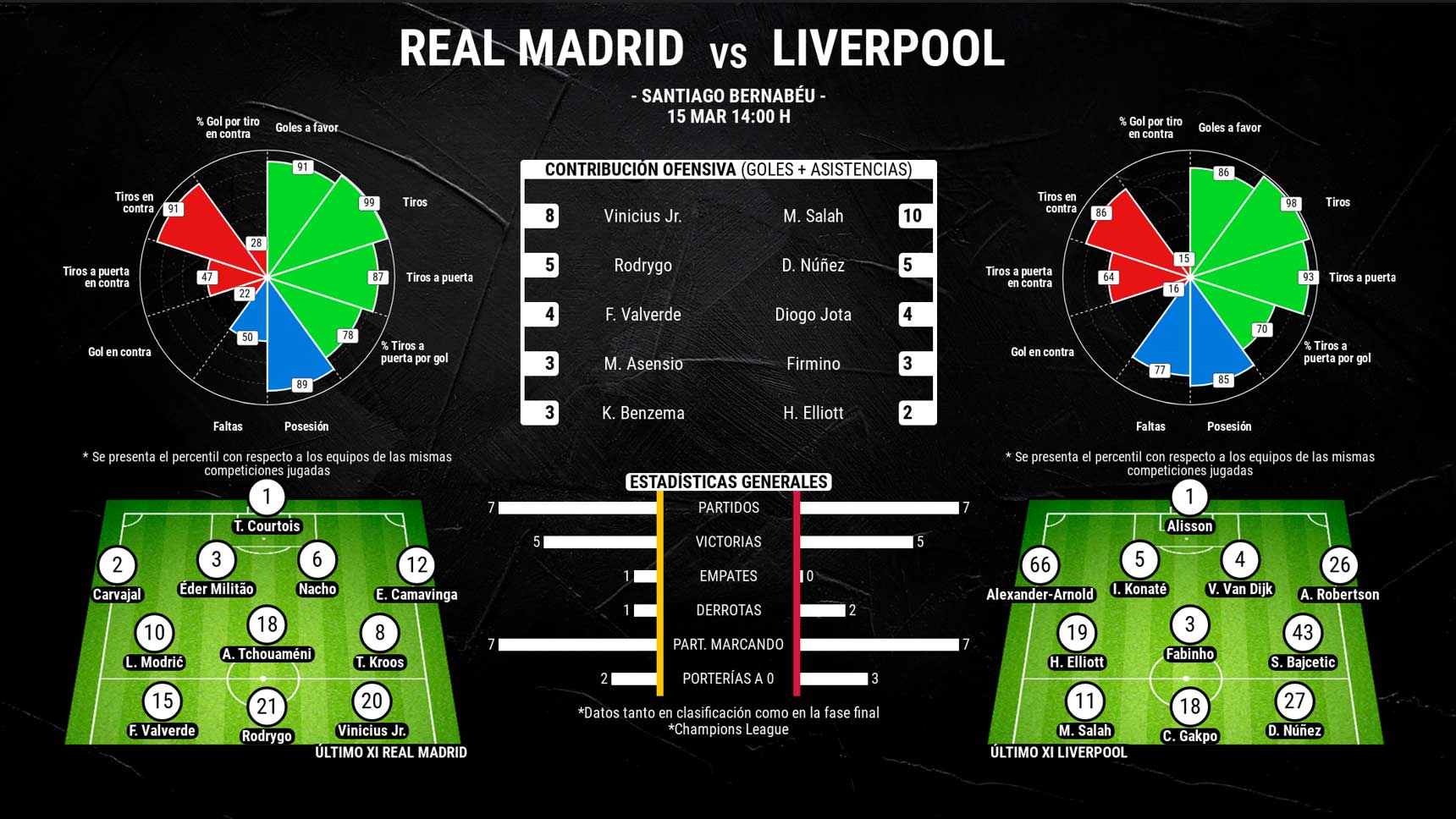 Así llegan Real Madrid y Liverpool